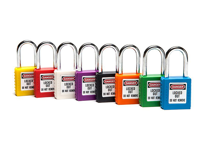 Candado de seguridad ZC-G01 fabricado con un cuerpo de PA no conductor duradero, la longitud del cuerpo del candado es de 38 mm, la altura del cuerpo del candado es de 45 mm, el ancho del cuerpo del candado es de 20 mm, la altura del grillete del candado es de 38 mm. Resiste temperaturas de -57 grados centígrados a 177 grados centígrados y resistencia al impacto, grillete de acero metálico con cromado. Grillete de candado no conductor fabricado con nailon Dupont importado. Nuestro tamaño, cuerpos de cerraduras y todos los colores diferentes se pueden personalizar. Puede hacer una etiqueta de PVC luminosa. Puede personalizar su LOGO.